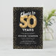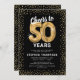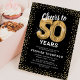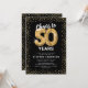 Elégante invitation de fête du cinquantième anniversaire avec un arrière - plan noir élégant qui peut être changé à n'importe quelle couleur, parties scintillant brillante or, cinquante ballons d'hélium or, et un modèle de texte de célébration du cinquantième anniversaire moderne qui est facile à personnaliser.