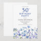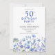 Préparez-vous à la fête avec cette invitation florale bleue à 50e anniversaire. Facile à modifier le texte. Jolie aquarelle fleur sauvage botanique.