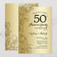 Carton d'invitation pour la 50e fête d'anniversaire de mariage de Fleur d'Or. Design moderne minimaliste avec des dessins de contours botaniques et une typographie en police de caractères script. Carte d'invitation élégante parfaite pour une célébration élégante. Peut être personnalisé pour n'importe quelle année de mariage. Cartes d'invitation Zazzle imprimées ou modèle de template numérique imprimable instantanément.