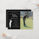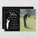 Fête du 50e anniversaire pour un golfeur, pour lui. Noir et blanc, photo, moderne, élégante invitation à la fête d'anniversaire. Veuillez le personnaliser avec vos détails.