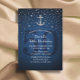 Nautical Navy Blue & Silver Ancre 50th Birthday Party Invitations.