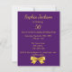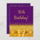 Elégante, classique, glamour et de style féminin invitation à la fête. Un ruban et un arc de couleur or. Couleur arrière - plan violette et violette. Avec le texte : 50e anniversaire! sur le devant Ajoutez les détails de votre événement sur le dos.