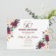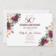 Invitez famille et amis à célébrer le "50e anniversaire de mariage" d'un couple spécial avec cette invitation de fête audacieuse, bordeaux et blanche, à motif floral. Pour personnaliser, insérez simplement votre texte dans notre modèle facile. N'oubliez pas de consulter l'ensemble complet d'accessoires assortis pour cette "collection de papeterie pour 50e anniversaire de mariage". Profitez ! (Notez que le nombre 50 peut être modifié en sélectionnant et en saisissant simplement un autre nombre.)
