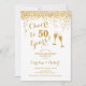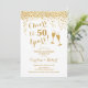Invitation d'anniversaire de mariage de 50 ans. À vos 50 ans ! Design élégant en blanc et or. Comprend des verres à champagne, une police script et des confettis. Parfait pour une célébration élégante de 50 ans de mariage. Cartes d'invitation Zazzle imprimées ou modèle numérique à télécharger instantanément. Peut être personnalisé pour afficher n'importe quelle année ! Personnalisez avec vos propres détails.