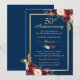 Célébrez votre 50e anniversaire de mariage avec ce modèle d'invitation « Marsala Burgundy Floral Navy Blue ». Avec notre outil de conception facile à utiliser, vous pouvez facilement le personnaliser pour qu'il soit unique.