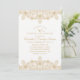 Cartes d'invitation pour le 50e anniversaire de mariage avec un motif doré élégant. Personnalisées selon les détails de votre célébration. Caractéristiques : belle dentelle dorée, typographie sur fond blanc. Si vous le souhaitez, vous pouvez facilement changer le fond et les couleurs du texte. Cette invitation d'anniversaire de mariage est conçue par http://www.superdazzle.com