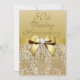Faire-part de fête personnalisés pour 50e anniversaire de mariage de mariage or élégants avec une belle image imprimée de couleurs dorées scintillantes avec sequins bijoux, motifs de pierres précieuses, images de rubans et de nœuds dorés brillants et jolis diamants numériques brillants sur un fond dégradé or chic avec texte marron. Remarque : toutes les invitations sur Zazzle ont des images imprimées plates - pas de vrais nœuds, diamants ou sequins. Ces invitations classe, glamour, pailletées et glamour pour anniversaires de mariage or sont décorées / imprimées sur les deux côtés. De belles invitations de fête d'anniversaire cinquantième chic, tendance et moderne. Si vous avez besoin d'aide pour personnaliser votre produit, veuillez me contacter via ma boutique. Je serai ravi de vous aider.