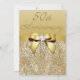 Cartes d'invitation personnalisées élégantes pour une célébration de 50 ans de mariage avec un motif de paillettes et de bijoux en or brillant, des images de rubans et de nœuds en or brillant et des bijoux numériques sur un fond dégradé or chic avec texte marron. Remarque : toutes les invitations sur Zazzle ont des images imprimées à plat. Ces invitations de mariage classe, glamour et clinquantes pour un anniversaire de mariage or sont décorées/imprimées sur les deux faces. Belles invitations chic, tendance et modernes pour une fête de cinquantième anniversaire de mariage. Si vous avez besoin d'aide pour personnaliser votre produit, veuillez me contacter via ma boutique. Je serai ravi de vous aider.