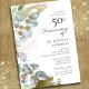 Cartes d'invitation pour 50e anniversaire de mariage avec aquarelle feuillage eucalyptus sauge. La police de caractères Script met en valeur avec une police de caractères serif facile à lire pour les noms. Facile à adapter à vos propres besoins de mariage.