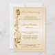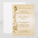 Invitation élégante pour le 50e anniversaire de mariage avec une fleur enroulée dorée sur la bordure gauche et un mince cadre sur un fond dégradé or pâle.