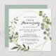 Cette invitation pour le 50e anniversaire de mariage géométrique or tropical est parfaite pour une célébration romantique d'anniversaire de mariage. Le design présente de belles feuilles vertes peintes à la main, ornant un cadre géométrique doré.