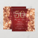 Élégant 50e anniversaire de mariage Glam Paillettes Or & Rouge modèle d'invitation. Caractérisé par des lumières dorées, des flocons de neige dorés et des paillettes dorées.