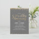Cet élégant et festif 4,5" x 6,25" 50e, cinquantième, Golden Mariage Anniversary Party Invitation comporte des confettis d'or (feuille simulée) avec les mots "50e anniversaire de mariage" montrant dans une police de script or. L'arrière - plan est gris, mais peut être changé à n'importe quelle couleur de votre choix. Les détails de la célébration peuvent être facilement customisés pour votre événement spécial. Le dos de la carte est orné d'un motif pointillé doré, avec un arrière - plan blanc que vous pouvez customiser à votre goût. Une façon simple et belle pour les invitations de célébrer un anniversaire de mariage d'or.