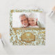 Invitation d'anniversaire de mariage cinquantième adorable sur fond de menthe aqua pastel avec une superposition de feuilles dorées élégantes. Bannière dorée assortie sur le devant et le dos de la carte. Téléchargez une photo spéciale pour remplacer ce modèle de photo. Personnalisez le texte du recto et du verso de l'invitation avec vos informations. Ce design est disponible sur d'autres articles dans ma boutique.