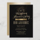 Cartons d'invitation 50e anniversaire de mariage noir et or moderne.