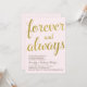 Une invitation de fête d'anniversaire de mariage glamour qui présente la phrase "À jamais et toujours" écrite dans un joli script calligraphique avec un aspect de papier doré, et un fond rose clair. Le texte peut être personnalisé pour s'adapter à n'importe quel anniversaire de mariage.