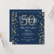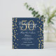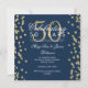 Élégant 50e Anniversaire de Mariage Fête Or Paillettes Confettis Bleu Marine modèle d'invitation. Caractérisé par des confettis pailletés or.