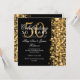 Élégant modèle d'invitation pour une fête d'anniversaire de mariage de 50 ans, pailleté et glamour or. Comprend des lumières dorées et des paillettes dorées.