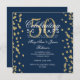 Élégant 50e Anniversaire de Mariage Fête Paillettes d'Or Confettis Bleu Marine modèle d'invitation. Avec des confettis paillettes d'or.