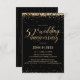 Cette invitation de fête élégante et festive de 3,5" x 5" pour un 50ème anniversaire de mariage, cinquantième anniversaire de mariage, Golden Wedding Anniversary Party, présente des confettis dorés (simili-feuille d'or) avec les mots "50ème anniversaire de mariage" affichés dans une police de caractères cursive dorée. Le fond est noir, mais peut être changé en n'importe quelle couleur de votre choix. Les détails de la célébration peuvent être facilement personnalisés pour votre événement spécial. Le verso de la carte présente un motif pointillé doré, également sur fond noir, que vous pouvez personnaliser à votre goût. Une façon simple et élégante d'inviter les invités à célébrer un anniversaire de mariage en or.