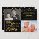 Invitez vos invités avec cette invitation pour les 50 ans de mariage en noir et or avec une typographie rétro indiquant 50 ANS DE PRÉPARATION et vous permet d'inclure leur année de mariage dans le design et d'ajouter leurs photos d'ALORS et d'AUJOURD'HUI. Les détails de l'invitation à la fête sont au verso.