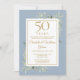 Avec des feuilles de eucalyptus verdoyantes de style aquarelle botanique sur un fond chic bleu poussiéreux. Cette élégante invitation d'anniversaire peut être personnalisée avec vos détails de célébration d'anniversaire de 50 ans spéciaux en typographie moderne dorée. Conçue par Thisisnotme©