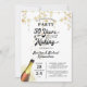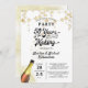 Faites sauter le bouchon pour une fête d'anniversaire de mariage 50 ANS DE PRÉPARATION avec ces invitations avec un design de titre de typographie rétro qui intègre leur année de mariage dans le design. Noir et or avec des serpentins de guirlande d'étoiles dorées. Contactez le concepteur via Zazzle Chat ou makeitaboutyoustore@gmail.com si vous souhaitez que ce design soit modifié, sur un autre produit ou si vous souhaitez des articles de coordination.