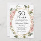 Un modèle d'invitation d'anniversaire de mariage élégant de 50 ans avec un cadre floral moderne de roses roses poussiéreuses et de feuillage vert doux. Tout le texte est modifiable.