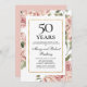 Un modèle d'invitation élégant pour le 50e anniversaire de mariage avec un cadre floral moderne de roses roses poudrées et de feuillage vert tendre. Tout le texte est modifiable.