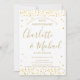 Avec de délicats cœurs d'amour dorés et des noms de signature en script. Personnalisez avec vos informations spéciales de cinquante ans d'anniversaire doré en lettrage doré chic. Conçu par Thisisnotme©