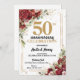 Invitation 50e anniversaire Deep Red & Gold Frame Roses