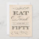 Elégante fête d'anniversaire personnalisable / invitation de dîner d'anniversaire avec les mots Manger, Boire et être Cinquante.
