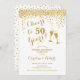 Invitation d'anniversaire de mariage de 50 ans en or. À 50 ans ! Design élégant en blanc et or. Comprend des verres à champagne, une police de caractères script et des confettis. Parfait pour une célébration élégante de 50 ans de mariage. Cartes d'invitation Zazzle imprimées ou modèle numérique à télécharger instantanément. Peut être personnalisé pour afficher n'importe quelle année ! Personnalisez avec vos propres détails.