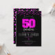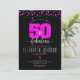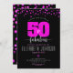 "50 et fabuleux." Possède-le et ouvre-le en 50 avec style! Envoyez ce fabuleux feuillet rose chaud "50", moderne et graphique, et des points sur un arrière - plan noir, 50e anniversaire invitation personnalisée pour une célébration à se souvenir. Des points roses chauds ornent le dos. Des enveloppes de coordination, des étiquettes, des plaques de papier, des serviettes et d'autres articles sont également disponibles. Garanti d’ajouter du style à l’événement de n’importe qui ! Il suffit de taper les informations de la fête avec le nom de la fille d’anniversaire, et vous pouvez facilement personnaliser cette invitation d’anniversaire. S'il vous plaît, envoyez-moi un message avec toute question ou demande.