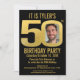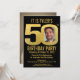 Gras simple graphique noir, et or modèle photo 50ème anniversaire invitation de fête. Personnalisez cette invitation d'anniversaire avec vos propres détails de fête d'anniversaire, et une photo de votre garçon ou fille d'anniversaire au centre du 0 sur 50 et une photo saignée complète au verso, parfait pour une occasion de photos maintenant et puis. D'autres années couleurs et articles correspondants sont disponibles. © Design original par Sarah Trett pour www.mylittleeden.com sur Zazzle.
