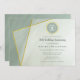 Cette invitation à la fête du 50e anniversaire du mariage, de style simple, moderne et géométrique, présente un thème de couleur jade grisée avec des éléments calligraphiques, des accents de cadre or asymétrique et une apparence de texture marbre - customisez les éléments de texte pour toute célébration d'anniversaire - par katz_d_zynes