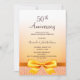 Une carte d'invitation en or pour un 50e anniversaire de mariage d'or. Glamour avec élégant et traditionnel faux or et dégradé blanc, arrière - plan sombre avec éclat de couleur or rose et un arc doré comme décoration. Modèle pour les noms et les détails de la fête. Le texte : 50ème Anniversaire et les noms sont écrits avec un script de style manuel moderne. Dos : faux arrière - plan de dégradé d'or.