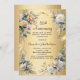 Un arrière - plan à l'allure d'or. Décoré de fleurs blanches et jaunes et d'un ruban doré. Personnalisez et ajoutez un nom et des détails.