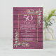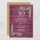 Doté d'une délicate aquarelle de verdure de jardin de campagne sur un arrière - plan de bois rouge bordeaux rustique, cette invitation élégante à l'anniversaire peut être personnalisée avec vos informations spéciales de célébration de 50 ans, avec un arrière - plan d'or à l'envers. Conçu par Thisisnotme©