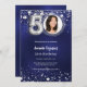 Une invitation photo moderne et design pour une fête du 50e anniversaire. Arrière - plan bleu marine, décoré d'étoiles. La couleur bleue est inégale. Personnalisez et ajoutez vos photos et détails de fête.