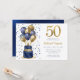 Cette fabuleuse invitation de 50e anniversaire pour hommes avec un gâteau bleu marine et or 2 couches avec ballons bleu marine et or, le numéro 50 en or et confetti bleu brillant serait parfait pour célébrer votre mari, frère, père, ami, collègue. Traditionnel et classique, il est frais, moderne et contemporain. L'arrière est une feuille bleu marine de coordination.