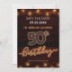 Arrière - plan texturé en bois foncé. Lumières d'humeur orange. Texte d'anniversaire du néon orange. Bar design modèle d'anniversaire thématique. Enregistrez le rappel d'aimant de date. Vous pouvez facilement modifier le nom et la date de l'événement. Le texte de l'âge et de l'anniversaire ne peut pas être modifié.