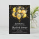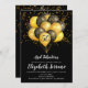 Ballons noirs et or et confetti invitation de la fête du 50e anniversaire. Design en noir et or audacieux avec une police en écriture blanche moderne. Personnaliser pour n'importe quel âge. 30, 40, 60, 70, 80, et plus.