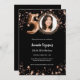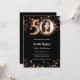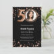 Une invitation photo moderne et design pour une fête du 50e anniversaire. Un arrière - plan noir, un texte rose en or. Décoré d'étoiles dorées roses. Personnalisez et ajoutez les détails de votre fête.