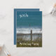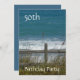 Cette belle vue sur l'océan qui s'enfonce avec une clôture et une pelouse sur la plage au premier plan, est une belle toile de fond pour cette invitation du 50e anniversaire de la fête pour le monsieur de votre vie. Le dos de l'invitation est prêt à être customisé.