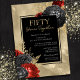 Cartes d'invitation florales rouges et noires pour 50e anniversaire de mariage. Feuilles florales en or faux. Police script avec un nom en police serif facile à lire. Facile à ajuster pour vos propres besoins de mariage.