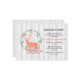 Une invitation à une fête d'anniversaire avec un style boho. Conçu avec un design aquarelle numérique. Une silhouette de renne orange pastel à l'intérieur d'une couronne de feuilles d'herbes. Des champignons et des fougères de forêt à ses pieds. Un motif d'arbre de bouleau gris et blanc en arrière-plan.