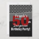 Voici une invitation tendance pour une fête d'anniversaire surprise avec une carte de sauvegarde de la date assortie en noir et blanc avec des accents de rouge. Amusant ! Tout le texte est personnalisable.
