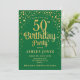Invitation à la fête du 50e anniversaire. Design élégant dans la forêt vert émeraude et faux or parties scintillant. Comprend des polices de caractères et des confettis stylisés. Message-moi si vous avez besoin d'âge personnalisé.