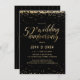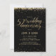 Cet élégant et festif 4,5" x 6,25" 50e, cinquantième, Golden Mariage Anniversary Party Invitation comporte des confettis d'or (feuille simulée) avec les mots "50e anniversaire de mariage" montrant dans une police de script or. L'arrière - plan est noir, mais peut être changé à n'importe quelle couleur de votre choix. Les détails de la célébration peuvent être facilement customisés pour votre événement spécial. Le dos de la carte est muni d'un motif pointillé doré, également avec un arrière - plan noir que vous pouvez customiser à votre goût. Une façon simple et belle pour les invitations de célébrer un anniversaire de mariage d'or.